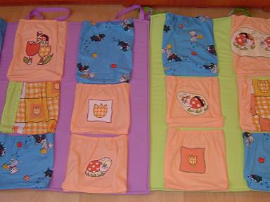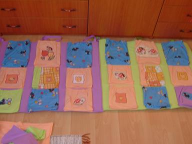 konecne som dokoncila projekt storocia vreckare na pracovne zosity do skolky (s vypoctami, zohnanim materailu a usitim mi to trvalo cez 3 tyzdne a pritom nic zlozite 😝 ) dalo sa mi to sit len na etapy. fialovy a zeleny su 1m x 0,8 m a oranzovy 0,7 x 0,8m. velke su site s 1 cm molitanom a v malom je dvojmo termolin 180, molitanove sa mi zda ze lepsie drzia tvar. ospravedlnujem sa za foto - narychlo pred odovzdanim - snad vyfotim aj v "akcii"