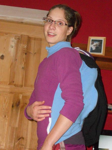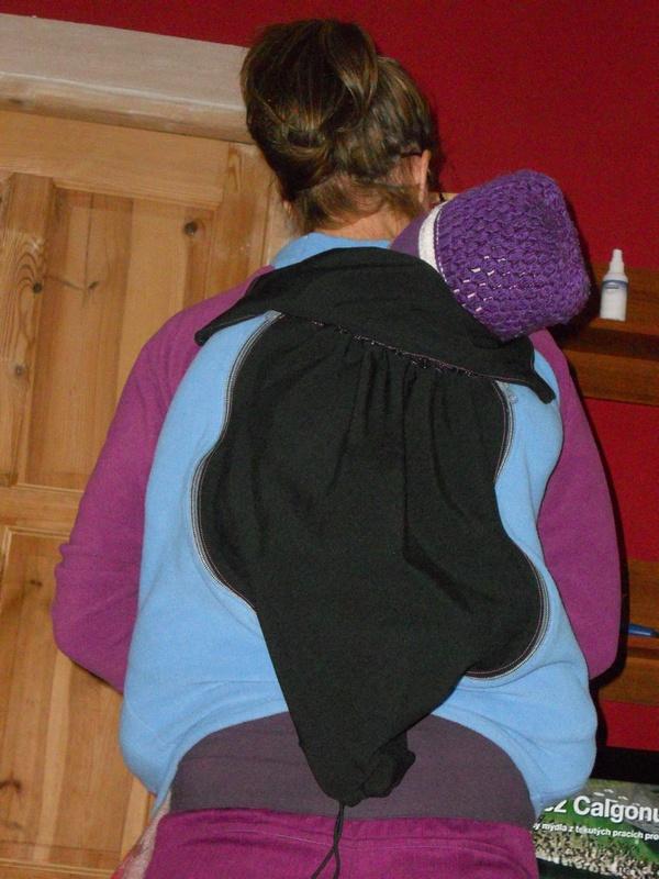 Hezký večer, moc se tu nešije 😝 😝 😝 😝 😝 😝 😝 , já jsem pokořila "obra velikána" po včerejšku kdy jsem byla totálně zoufalá a ráno zjistila, že mi to dítě v té mikině asi umrze, jsem zasedla na net a hledala jestli někdo neprodává "zajetou" AW nebo jinou nosící mikinu 😀 a manžel mi řekl, že jsem přeci dobrá a že můžu záda střihnout znovu a ušít nové, tak jsem je střihla znovu, došila a už jsem byla spokojenější, mikina sedí celkem dobře, vsadka je ze softu, na zimu jí možná ještě zateplím, ale jinak jsem spokojená, nohy jí nakoukali, teplá byla všude a vytuhla 😀 na fotkách toho moc vidět není, manžel momentálně umírá na rýmičku, a nebyl schopný se zvednout z gauče 😀 takže pokud se odhodlám střihnout do softu na zimní bundu tak už budu mít asi jasno co a jak 😀