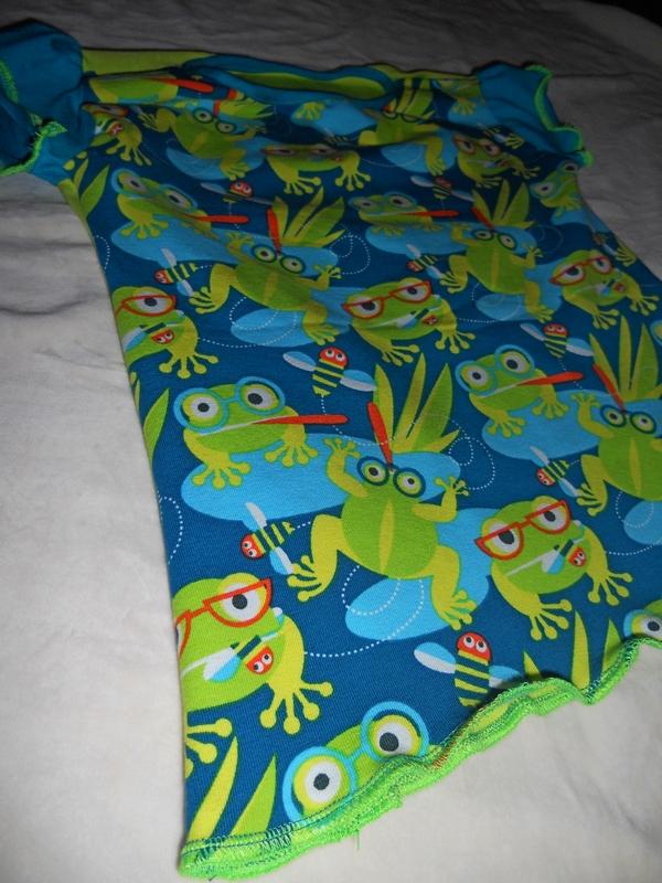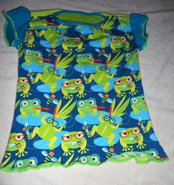 Tak já dneska střihla do bambusu, je úžasný, manželovi jsem ušila pýžo, není na tom nic moc k focení 😀 ale Bětušce jsem ušila tričko, když v úterý přišly úplety z lille hrozně se jí líbily žáby, dneska jsem si dovezla bambus a úžasně k nim sedí smaragd i zelená, jsou fakt nádherný 🙂 a triko je skvělý, není na něm nic složitýho, ale je pro tu mou nemocnou šmudlu, snad jí brzy pustí 😵