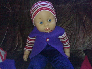 A pak pro pobavení, vyšťourala jsem asi první věc, co jsem kdy šila, merino overálek pro Jolanku, střih jsem dělala od oka, šila cik cakem a připadala si jako king 😀 Jen už se to trhalo, ťapky nedržely na nohách a Jáša pořád vystrkoval nohy těma díram v zapínání, tak jsem ho trošku předělala. nad ještě poslouží 😀