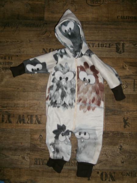 tak vkládám soví overal č.2. už sedí parádně 🙂 a také jsem dneska zkoušela kuklu, když je teď ta kuklová sezona, jen asi ma malý divnou hlavu, jelikož mu kukla ne úplně sedí... foceno ještě před dokončením.... musela jsem ještě upravovat a na další pokus ještě poopravit střih....ale řeknu vám, to šití mě začíná čím dál víc bavit 😀