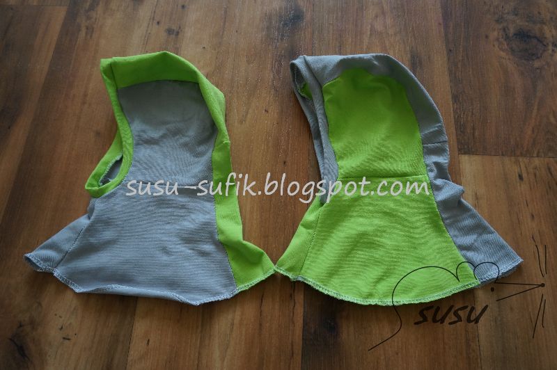 tak záhada kukel vyřešena, teď už to s trochou snahy narvu na hlavu i já... ten spodní lem jsme sešila moc vysoko. Takže foto i na modelovi, živému vyzkouším, až přijde ze školky, doufám, že budou sedět.