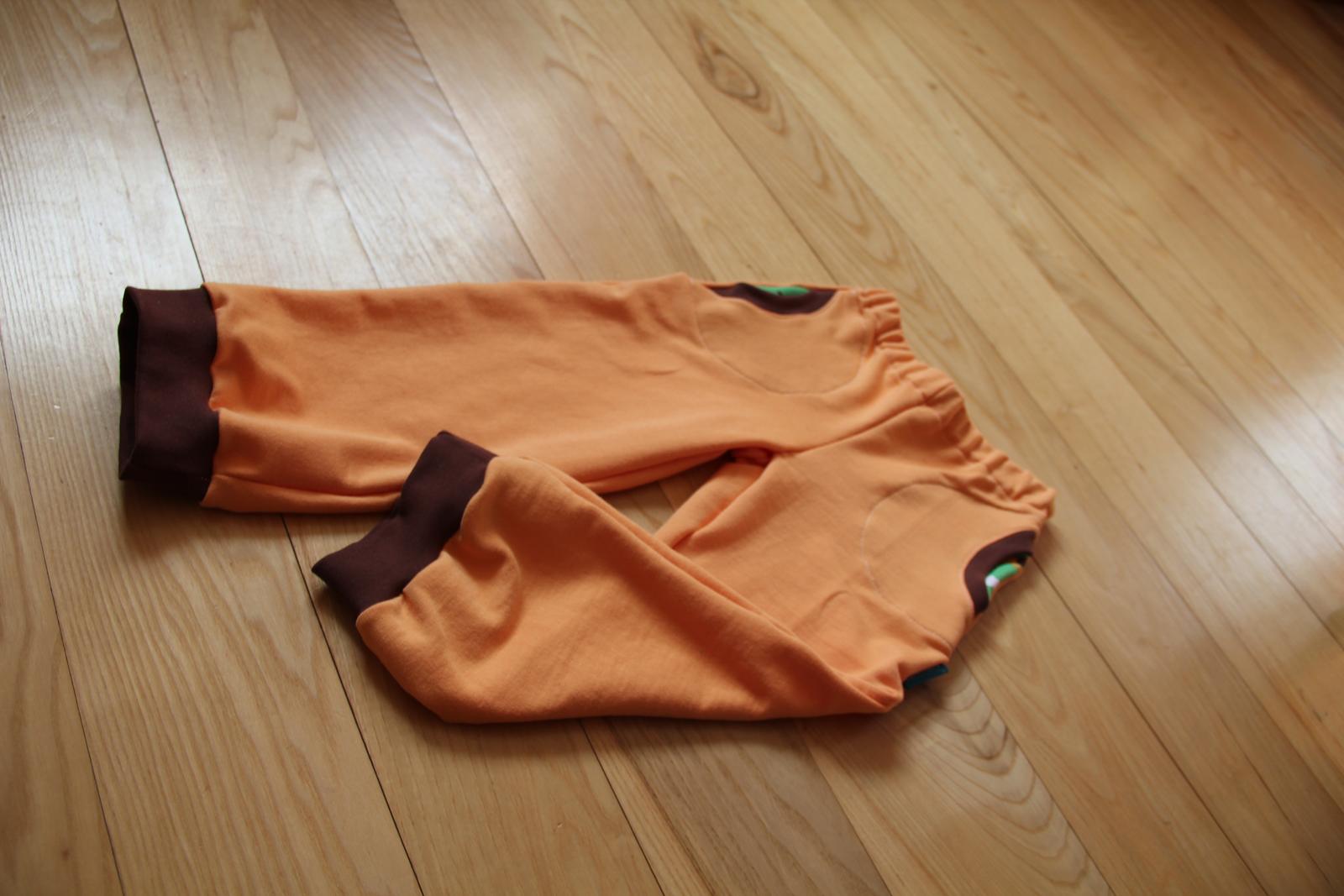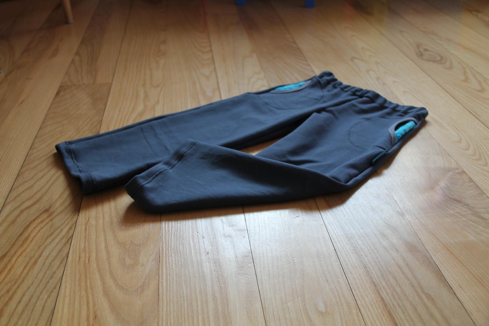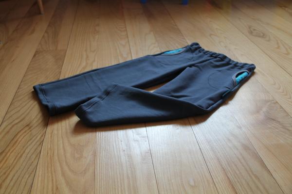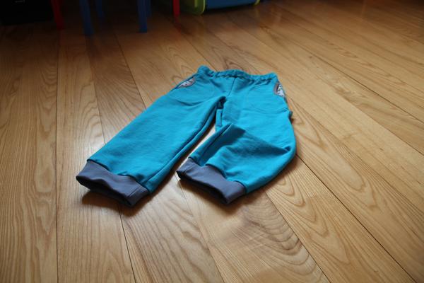 dnešné tepláky z pánskej mikiny. predok a zadok hore z predného a zadného dielu a nadšila som rukávy ako nohavice. synovi krásne sedia, troška dlhšie sú, ale patent dole to krásne podrží a už viem v čom pôjde v pondelok do škôlky. sú bez bočného šva, tak som dala vrecko na zadok. už viem ako na to, tak môžem šit.