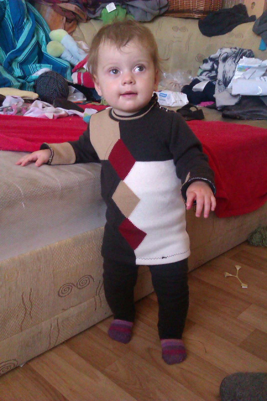 Můj první recy počin....bordel za nemocnou modelkou ignorujte....je třeba mít vše po ruce 😉 (ano, a jsem strašný bordelář)...ale jinak, holky, jsem nadšená....tohle byl první sekáč, teď mám v plánu vyplenit velkoobchod (secondhand), ale prostě...za 50Kč triko + kamaše z 50procentní vlny+ akryl(takže můžu prát v pračce a nekouše to), opravdu z metráže neušiju....a to mi ještě kousky zbyly (cca na čepici)....