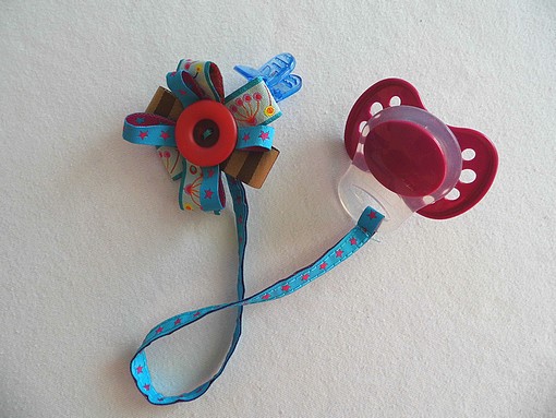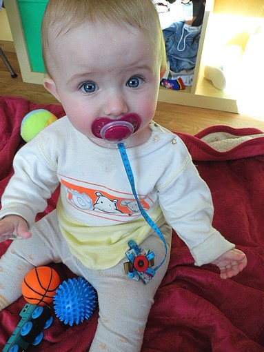 pak jsem si hrála se stuhama z Farbenmixu - Linda stále zahazuje dudlík a protože miluje jen tenhle, tak nám tak už připravila nejednu prekérní chvilku při hledání dudu .-D