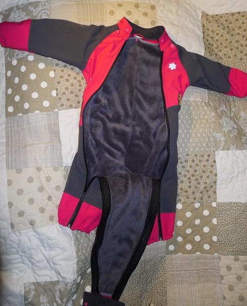 první pokus té rozepínací kombinézy pro Jášu. Tohle teda není pro něj 😀 ale jako zkouška střihu dobrý. Rozepínací až dolů, odepínací coralová vrstva, aby byla využitelná i teď. Na zádech je guma, proto vypadá tak beztvaře. Nemůžu se dočkat, až dorazí model a narvu ho do toho 😀