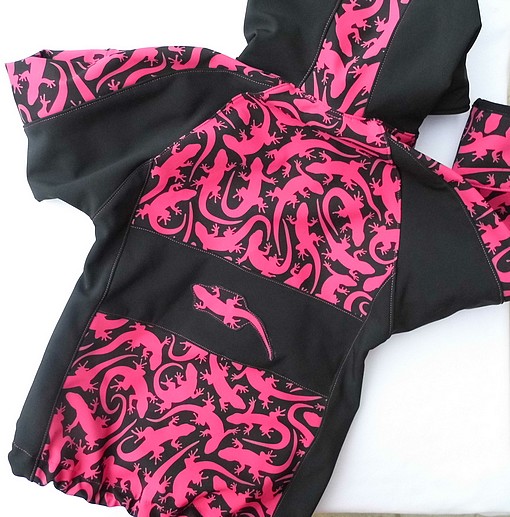 Šila jsem velikost 34, místo 36, kterou obvykle nosím, páč jsem chtěla opravdu na tělo a to merino hodně pruží a ještě jsem nepřidávala na švy. Sorry za fotku, mám doma akorát prťata, líp teď neumím. 😉