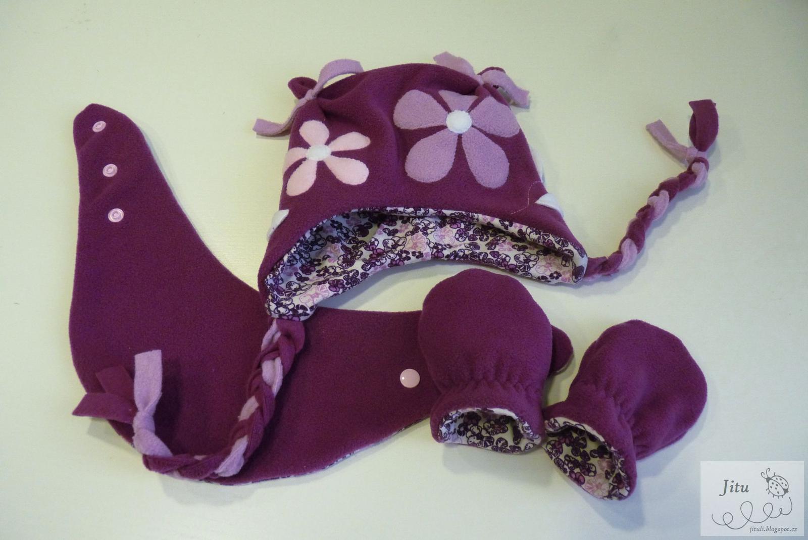 A pár fotek ode mě - pro změnu čepičky 🙂 Tentokrát velmi holčičí, sada bez rukaviček pro Valentýnku a sada s rukavičkami na objednávku.