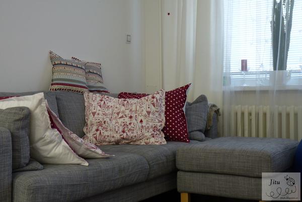 @bury no my jsme celé 2 roky, co máme gauč, neměli vůbec žádné. Látku ladící k závěsům, co tu máme jinak přes rok, mám koupenou už rok a půl. Tohle byla taková fofr akce - v pondělí jsem se rozhodla, že udělám výzdobu a objednala jsem látky u Miruš, během týdne jsem přesvědčila manžela, že nutně potřebuju jednobarevné ladící závěsy (půjdou pak do ložnice), v sobotu jsme je koupili a celý víkend jsem šila, v neděli jsem celé talenty strávila u závěsů - zkracovaa, žehlila a věšela 🙂 A v pondělí jsem dodělávala věnec, na to už o víkendu nebyla energie. Tak teď ještě taky dohnat skluz v jiném předvánočním šití, co jsem za ten víkend nabrala 🙂 Ale mám radost, poprvé mám v našem provizorním bytě pocit, že to tu vypadá aspoň trochu svátečně