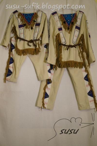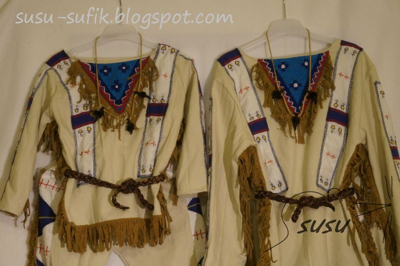 no a tady mé vrcholní dílo. Trošku zaplevelím. Dva indiánské kostýmy s doplňky - pásek, náhrdelník, čelenka 😀 . K pouzdru na nůž se dostanu až bude nůž, bez něj se to jaksi blbě šije.