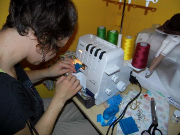 a taky jsme se setřenkou konečně vyzkoušely OL 😀 přivezla si k nám na návštěvu nastříhaný overálek a prý to ať si to první šití vyzkouším na cizím 😀