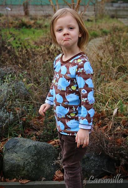 @macin73 Je potřeba jedna délka trička + rezerva na srážení + na švy. Míně šiju tričko cca 43 cm dlouhé zadní díl, 5 cm srážení, 5 cm švy, takže to vychází cca 55 cm, že by se mělo vejít triko pro holčičku 104/110. Já nikdy nekupuju ale půlmetr 😀 Klučičí trika se šijí delší a volnější, tak tam je spotřeba jinak, ale na Mínu ten půlmetr ještě v létě stačil, teď už potřebuje delší, záda šiju dokulata a moc nemám ráda, když je to pod zadek, dneska to měla pod zadek, protože tričko je nevysrážené 😀