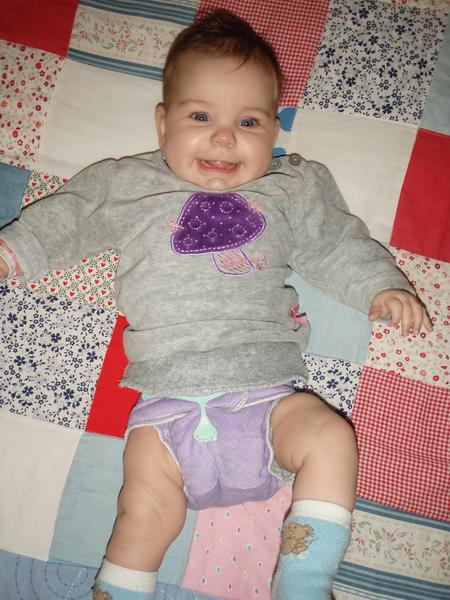 Rada bych se pochlubila novym prirustkem do plenkove vybavy. Plenky na snapi sponku, navrch frote z Dadky a uvnitr bambusovy flis. Jeste mi uplne nejdou sit obloucky (dosivam a jistim cikcakem) a nevim jak schovat zacatek a konec stehu OL, ale ja na sobe vidim pokrok a mam z nej radost.