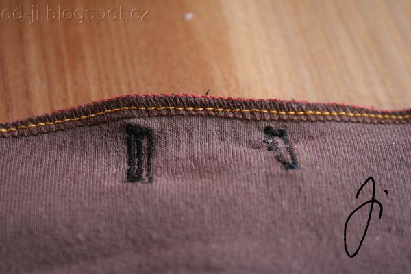Potrápilo mě šití knoflíkových direk pro regulovací gumičku. Výsledek je dobrý, schovalo se to pod gumičku. Ale na detailních fotkách je videt jak se mi chmoustala nit. Občas byl problém vytáhnout látku ze stroje. Myslíte, že to je nedostatečným zpevněním? Měla jsem podloženo papírem...Obvykle mi to funguje, ale dneska ne.