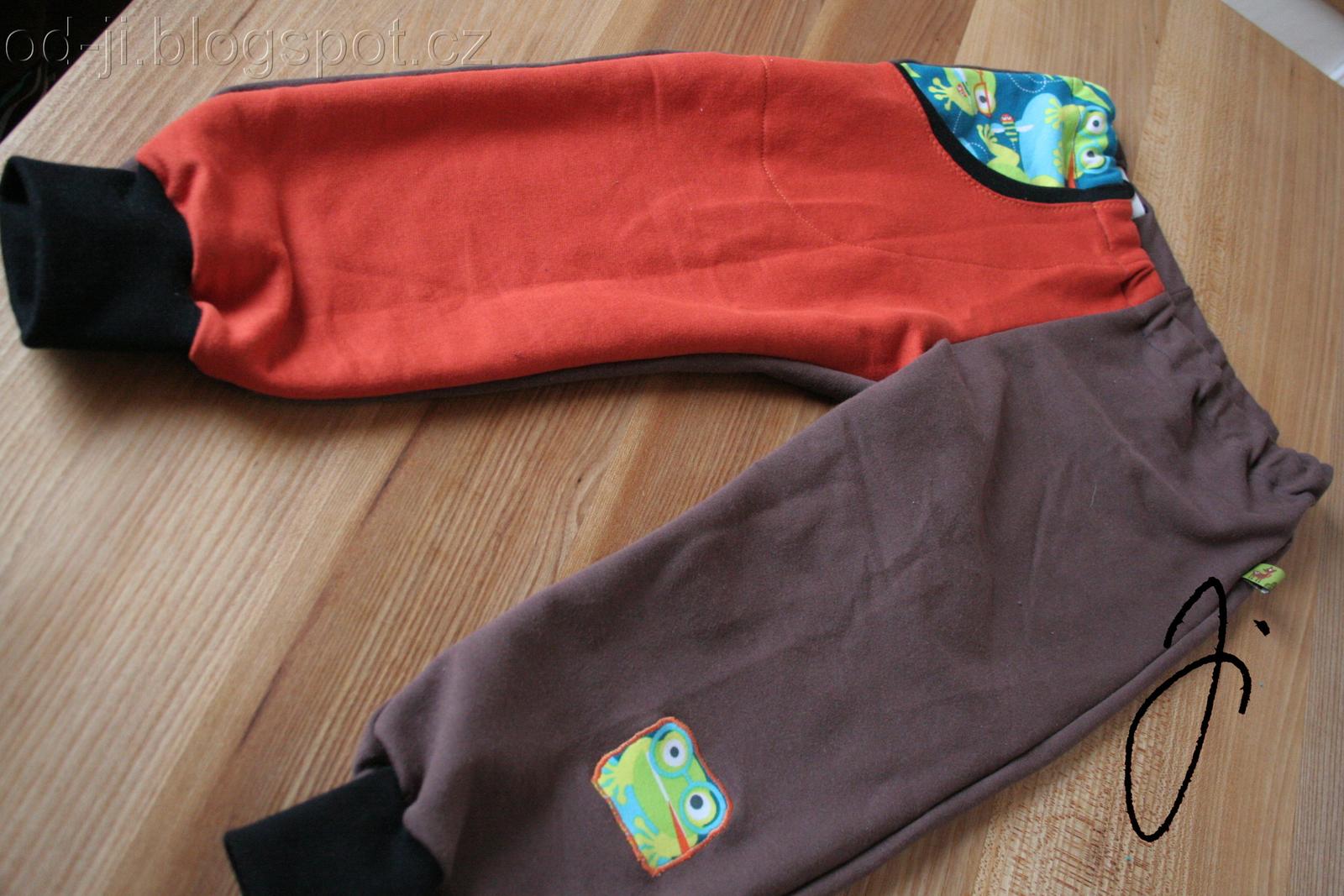 já přihodím jen takové vcelku rychle ušité tepláčky pro synovce k narozeninám. Bude je mít k tričku od ježíška 🙂