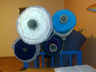 holky, jde to pomaleji než jsem myslela...sice máme obývák skoro prázdný, ale i tak jsem ho musela debordelizovat...ty role jsou fakt širokééé (nečekaně), tak abych je rozkulila🙂 čili mám poměřeno jen trochu, ale v noci pokračuji 😀