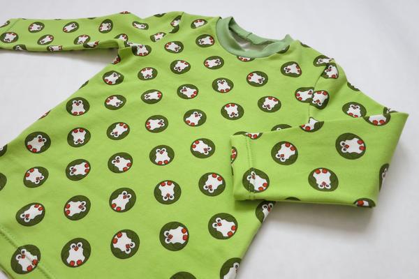 Ještě jsem stihla ušít Filipovi zelený s broučkama a krémovým prýmkem. 🙂