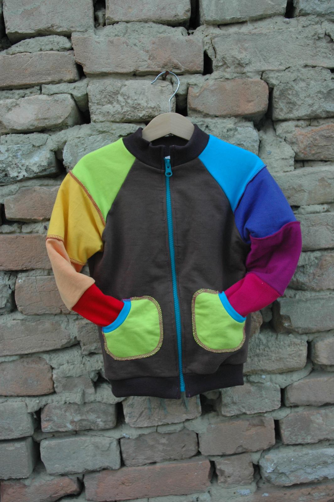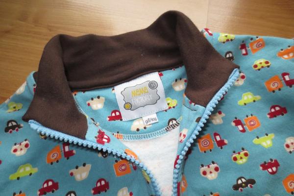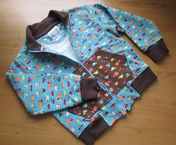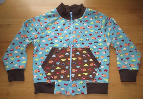 Syn si přál z této látky, tak jsem to zkusila, líbí se mu, jen teda zlaté mikinky s kapucemi, bez kapes, nebo s kapsami jen zboku a ne u zipu, kdo to má pak sesazovat 😀 Ale tentokrát to mám i se začistěním u límce 😉