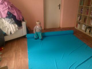 @caramilla Fany mi pořád na to lezl, když jsem měřila, abych zjistila nedostatky a přebytky - nehrála jsem na přesné centimetry, tak mi to nevadilo...ale teda když jsem po každém "runu" přenášela roli na druhou stranu obýváku a on mi dřepěl na látce a odmítal se hnout...málem jsem vypustila duši - metr jsem nosila v zubech a zpocená jsem byla jak alan...na jedné roli byly většinou 3-4 látky, takže sado....fakt tíha...ještě že už jsem dlouho po císaři, tak břicho už mi problém vcelku nedělá 😀...Při ostrém měření a stříhání už ho látka nezajímá, ale křída a nůžky ...😀 Ted s tím chci pohnout, před chvílí jsem ho uložila, tak budu mít klid😀