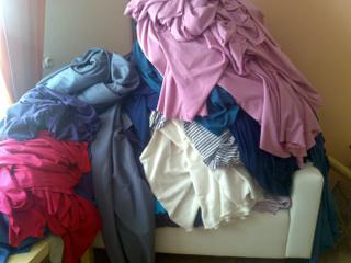 3.ještě neúplná halda látek...tohle mám nastříhat říkáte???? 🙄