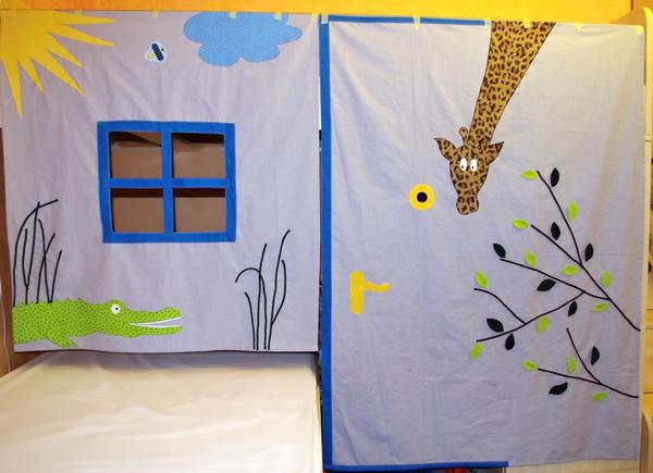 Mám hotovu zakázku, konečně, dost jsem ji odkládala. Začala jsem už včera večer, o půlnoci šla spát a dnes jsem na tom dělala v podstatě celý den. Snad to zákaznice odsouhlasí a nebudu muset už nic dalšího došívat. Budou mít jiné uchycení, proto to mám jen přilepené lepící páskou k zábradlí.
