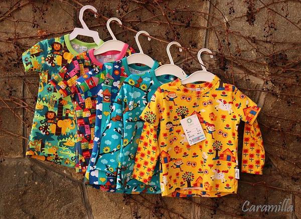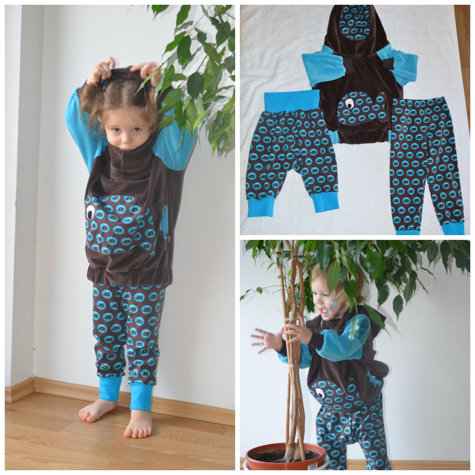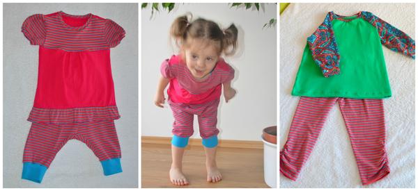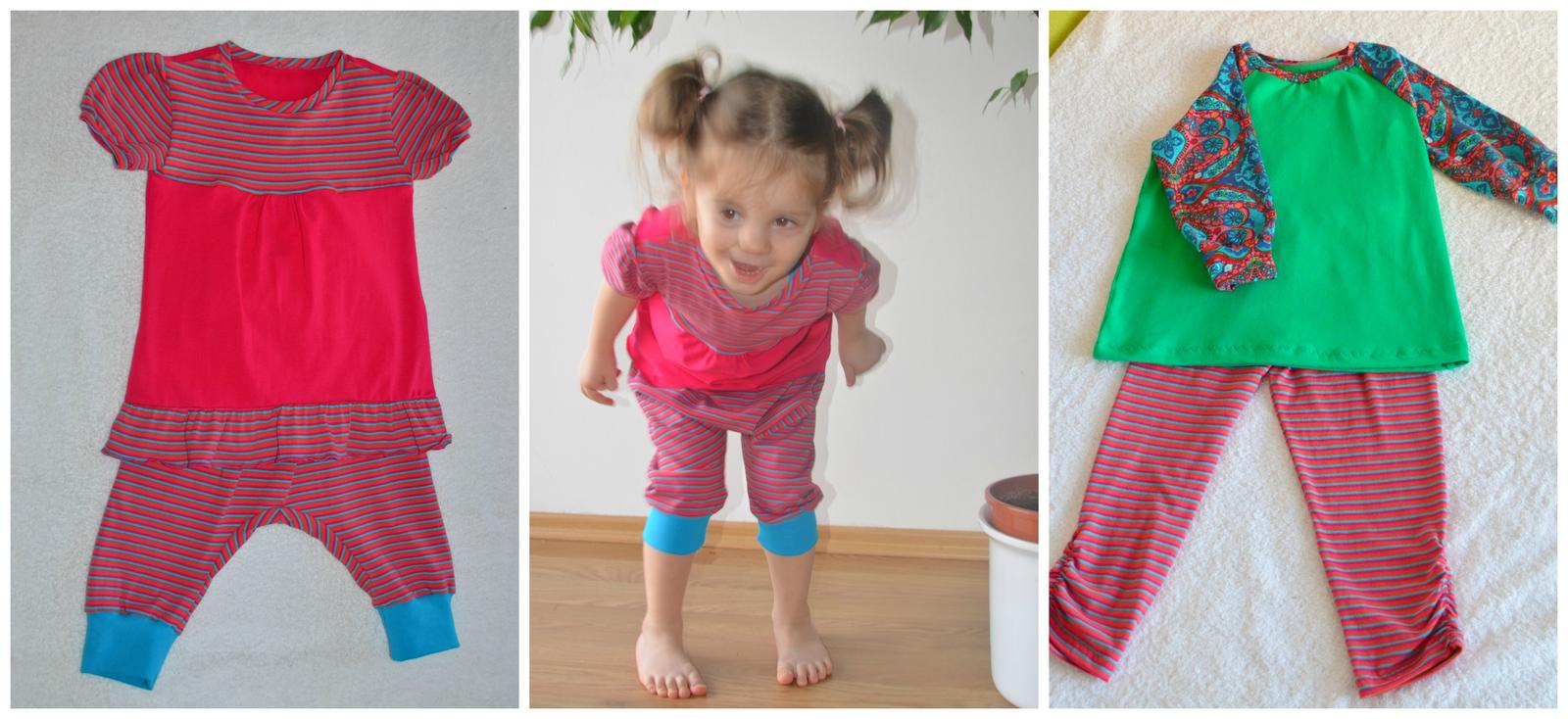 Aby to nevypadalo, že jen čtu a kecám, něco málo ode mne. Plyšové mikinky pro holky, ta větší je názorný příklad toho, když bezmozek dělá aplikace, ale příště už budu chytřejší, k tomu legíny a pidi turky, trička pro holky ze zbytků a k nim legínky a pidi turky z nádherného úpletu z Atelieru (na fotkách nevypadá, ale v reálu moc hezký).