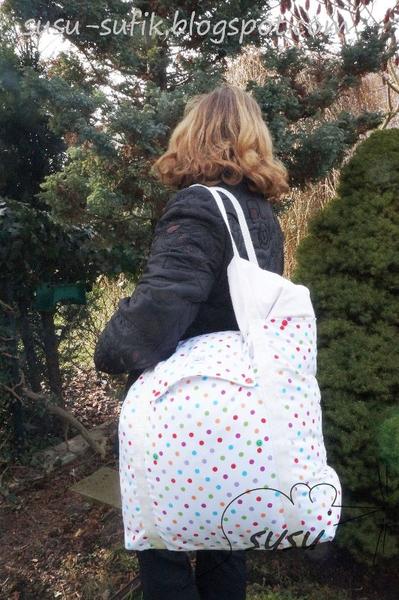 jo a do tý tašky je narvaný polštář 90x90. Docela jsem koukala, že se tam vejde...