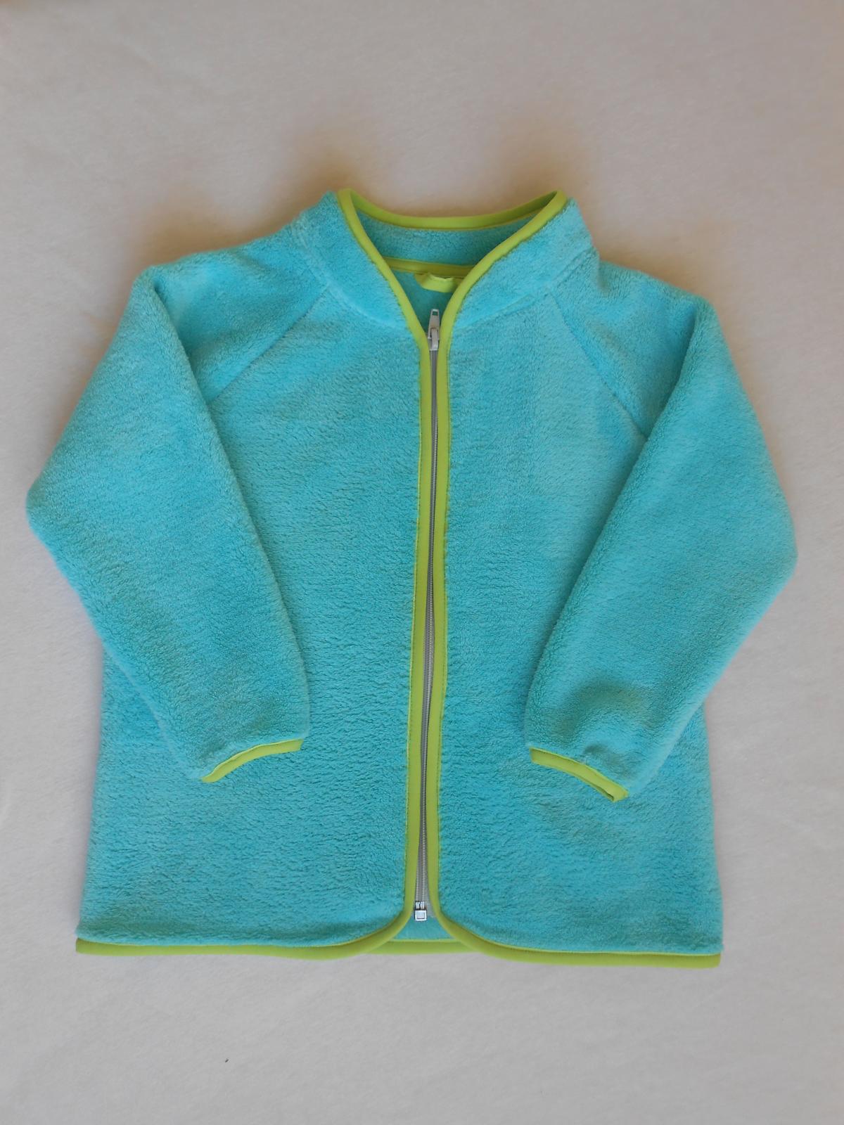 Ještě přidávám fotku mého posledního počinu - mikina z coral fleesu. Začištění výstřihu lem. gumičkou šlo celkem dobře, jen tedy nevím, kdy už se konečně naučím prošívat rovně...přes veškerou snahu mi to nakonec vždycky trochu ujíždí... Zip jsem se nakonec rozhodla nezačišťovat. Šila jsem "trochu větší", aby to bylo synovi i příští zimu...no, spíš to bude na příští a přespříští zimu, letos jako župánek 🙂.