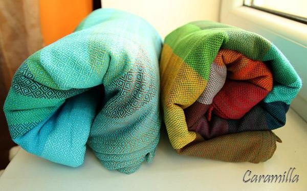 A dnes ráno přišly dva Girasoly (donau 4,6 a ten prouhatý je kraťoučký a přešiju si ho na RingSling), jsou kráááááááááááááásnéééééééééé. Doufám, že Oskárek bude nosící miminko 😵