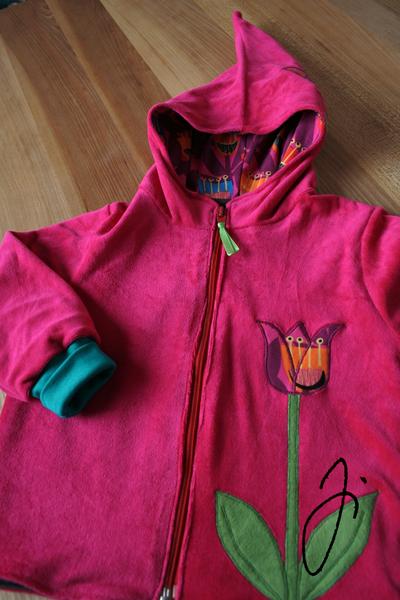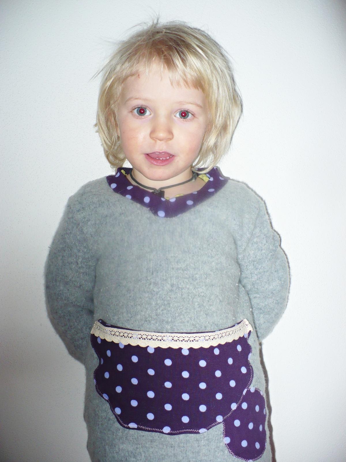 Vkládám výsledek mého hraní. Mikinu nepotřebujem, ale nějak jsem se nechala unést...to ta závislost, ojoj. Ještě jsem měla v plánu vyšít pár stehů ručně, ale nějak jsem se nemohla dočkat až jí došiju, tak jsem slevila ze svých požadavků.Hlavní je, že se Kristý skřítkovská mikča líbí, ještě takovou neměla 🙂
