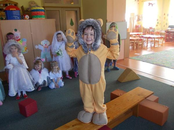 to je ten náš lev. Nakonec jsem v kiku splašila fleecovou deku a vyšlo mi to tak tak. Hříva je odepínací kožešina z mojí kapuce zimní bundy 😀 Jsem ji tam přišila v ruce.