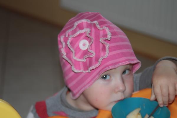 Majtky z ostřižků, testovací čepice rovněž z odstřižků a fleesová sukýnka.
