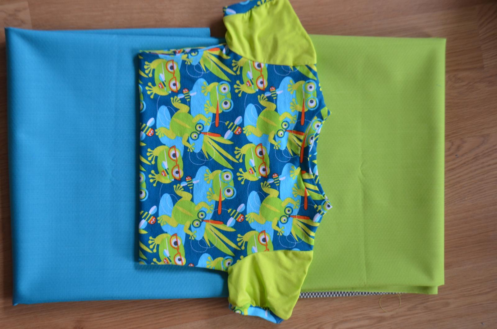 Blejskla jsem ti ho s žábama, abys měla představu o barvách...jinak tyrkys je tyrkys a ne modrá jako na fotce.