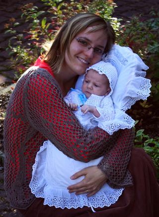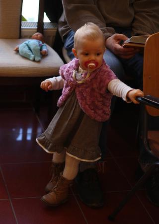 a tady ještě pro fanynky Šimonka pár fotek z dnešního krásného křtu, Šimonek v kolébce pro panenky, Jasmínka v novém předraženém komletku z HaM (co by maminka nikdy nekoupila a přece ho koupila 😀 ), a dvě nočníkovky. Konečně mám pocit, že se učení na nočníček zlomilo k lepšímu, už si říká v noci, v restauraci, na procházce a dneska čurala i do velkého záchodu 😀