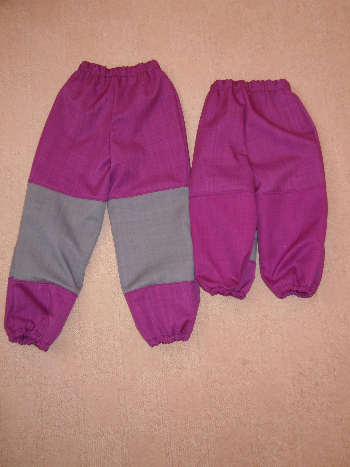 Přidávám svoje druhé softshellky (teda třetí a čtvrté, šiju to po dvou). Zmastila jsem na nich snad co se dalo, začalo to objednávkou, kdy jsem objednala málo látky, pak jsem z jednoho střihu dělala dvě velikosti, různě jsem posouvala hranici těch dílů na kolena, tak mi to pak nelícuje přední a zadní díl, na těch větších mám zadní spodní díl zešitý ze dvou dílů, protože jsem ještě myslela, že mi materiál výjde a zkoušela jsem to nějak udělat, u menších jsem střihla krátký spodní díl, tak jsem ho ještě nastavovala, ale to není vidět. No příště mám co vylepšovat 🙂
