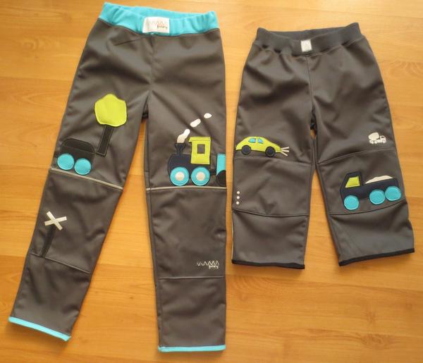Též jsem klukům ušila něco nového, když se tu traduje ten pokakaný beránek 😀 😀 Softky s úpletem do nepříznivého počasí. 😉 PS: mašinka měla být našita na druhé nohavici, takto vagónky hold pokračují na ZD 😀 😀 (foto ZD mám rozmazané, tak alespoň toto 😉 ) Ale co jsem zkazila nejvíce, je to refl. logo Mama fakctory, měla jsem nějak rozpálenou žehličku či co 😅