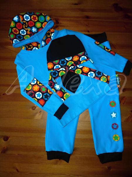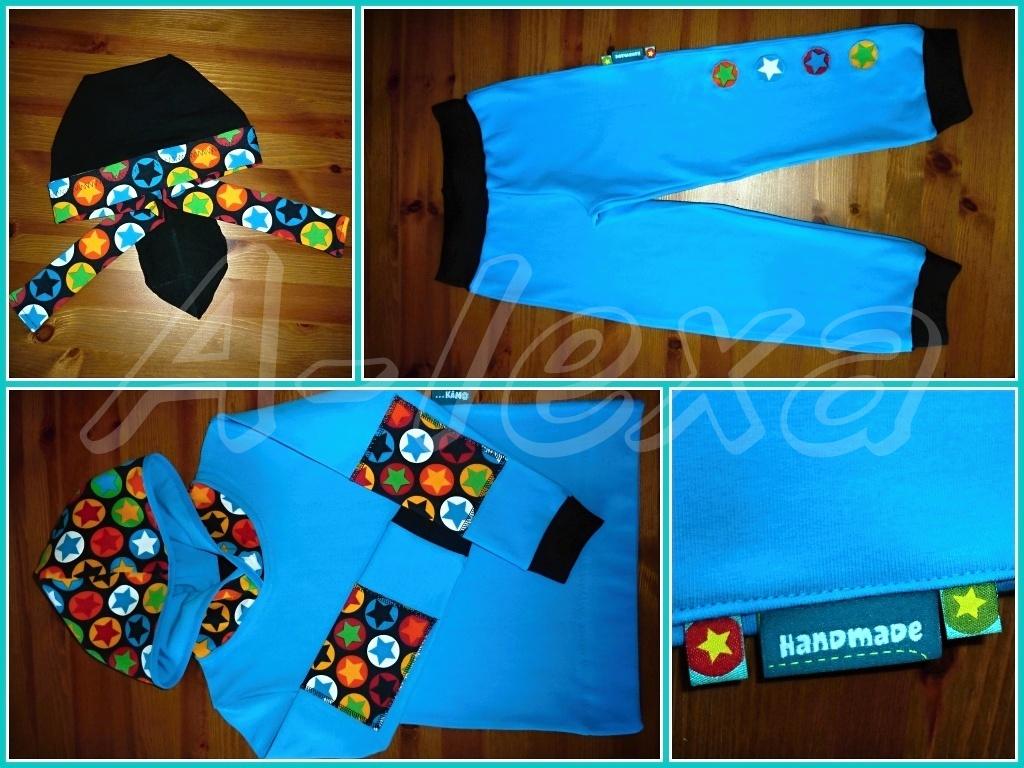 Tak jsem včera (no spíš už dneska) ještě musela ušít tepláčky a pirátku na dnešní šupačku, aby byl prcek sladěný. Mikinku jsem již dávala, tak dávám jen aby bylo vidět jak ladí 🙂 . Chěla jsem vyfotit na prckovi, ale ráno mi utekl a když přijeli, tak spinkal - asi ho to šupání zmohlo 😀. No ikdyž, když měl šupat babičky, tak si prý pomlázku přitulil k tělu a jen opakoval: "ne, ne, ne" a kroutil hlavou. 😅