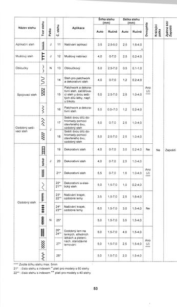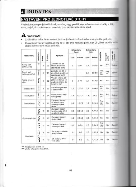 @koki_melo @anastazieb @mahafi @sinala jsem fakt marná 😀 Ani nevím, které stehy jsou overlockový. Naskenovala jsem seznam stehů mýho stroje, pak tam mám ještě stehy na knoflíkové dírky, aplikace a ozdobné. Celkem 60 stehů (využívám asi 3 😝 ). Normálně šiju 0 a 1, začišťuju 15. Úplet jsem teď šila 3, zkoušela jsem 5 a 2, ale ten 3 mi přišel nejlepší.