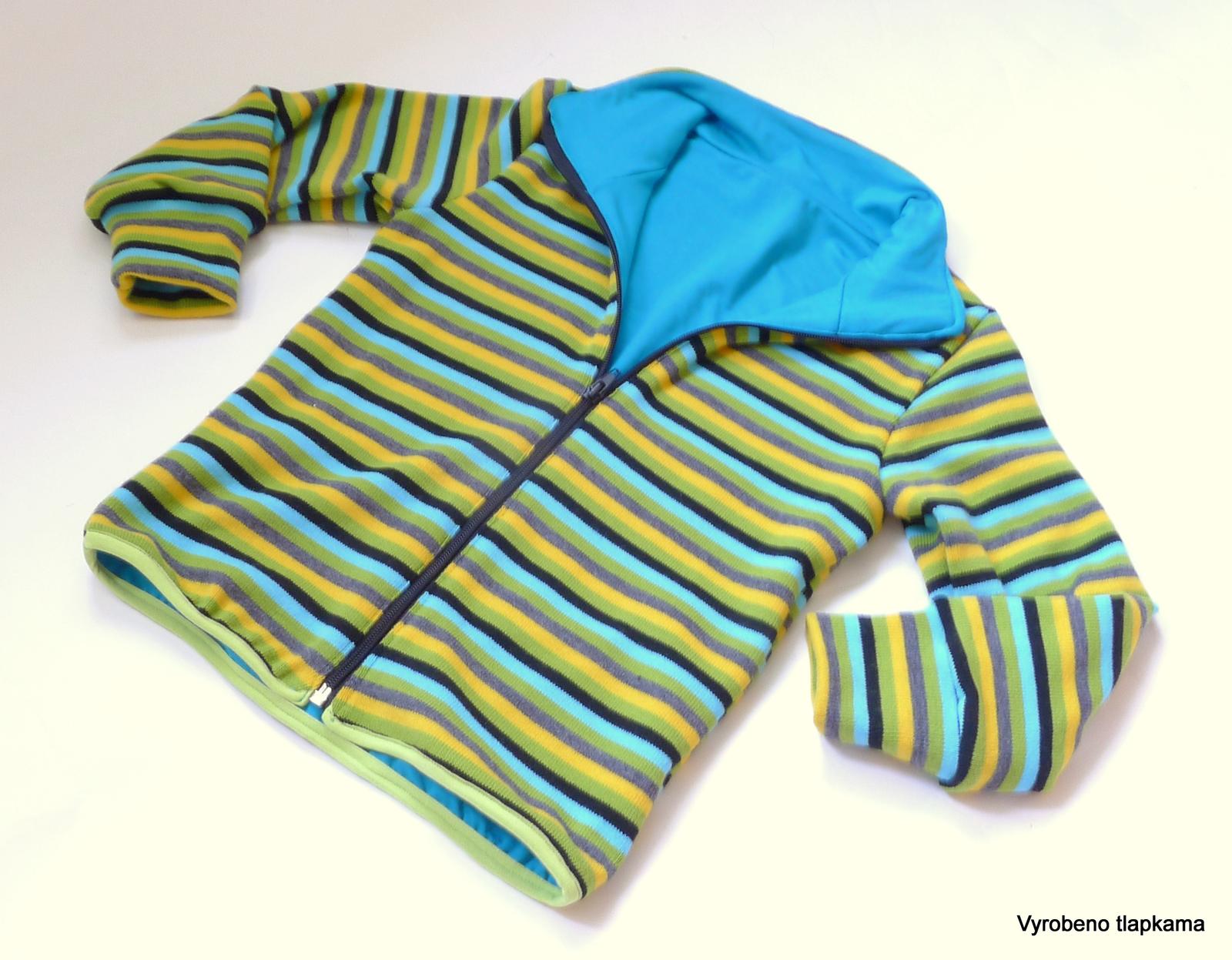 A pak tunika, vlněné legíny a něco, z čeho mám dneska radost - vlněný kabátek podšitý bambusem. Trochu se to tahalo, ale zvládla jsem podšívku dokonce tak, že nikde nejsou vidět švy a skoro i navazujou proužky 😀