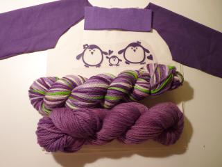Jinak jsem včera barvila vlnu, vyšlo to celkem podle představ... Tchyně z toho bude (snad) plést longiesky s volánkem a odepínacíma nohavičkama, něco jako toto -- http://farm6.static.flickr.com/5218/5467451484_.... Tak jsem k tomu teď nařezala na tričko, bude na něm velurová nažehlovačka s tučňákama. Chtěla jsem to nakombinovat i se zelenou, ale mám jen takový odstín, co se moc nehodí... Tak asi udělám aspoň mikinku ze zeleného aksamitu, to je dost přesně stejná barva... Akorát se mi ten střih na tričko zdá nějaký široký a krátký, nemám to teď na čem poměřit, jestli to bude dobré... ale delší by to asi být mohlo. Nemůže mi někdo změřit na svém cca 2-3 měs. miminu, kolik je míra od ramínka po rozkrok? Jestli tady vůbec někdo takové mimino má 😀 (foceno teď večer při umělém světle, takže kvalita fotek nic moc...)