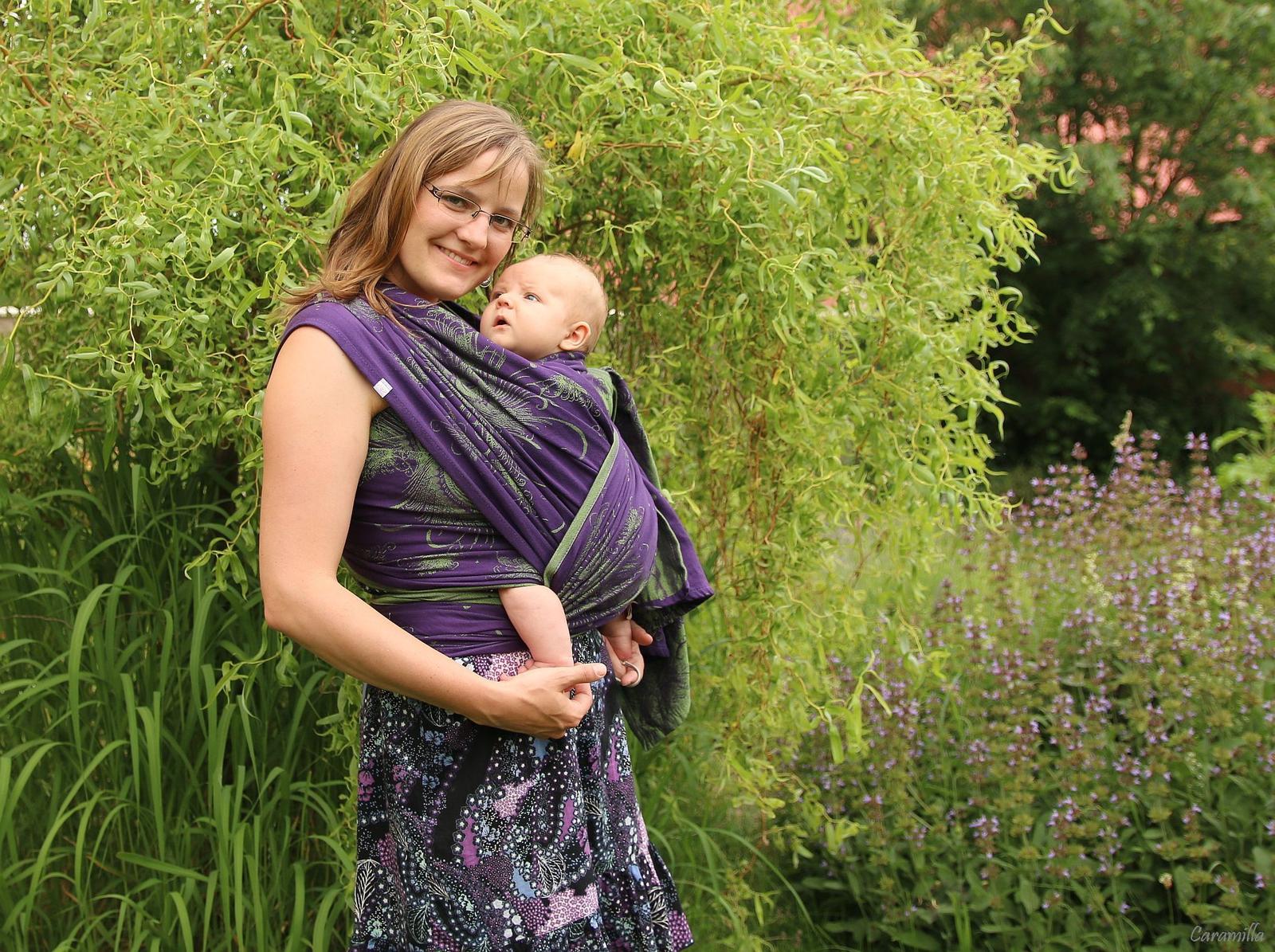 A pak ještě jedna šátková, náš nový Natibaby Lumine, jen tam mezi řečí, moc nenosím fialovou, kdysi jsem měla všechno fialové a teď se mi ta barva okoukala, ale tohle se nedalo odolat. A právě nemám, co k tomu 😀