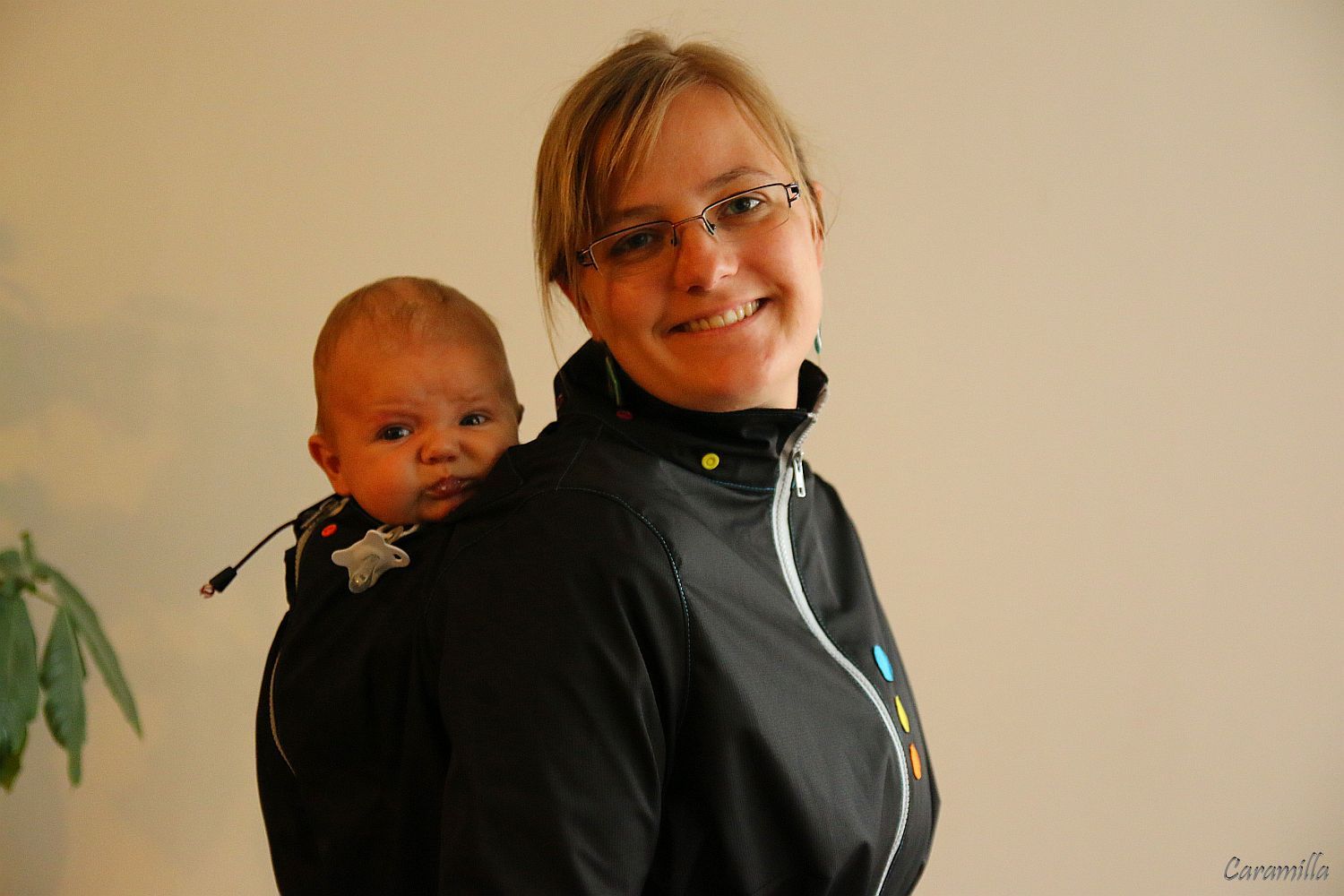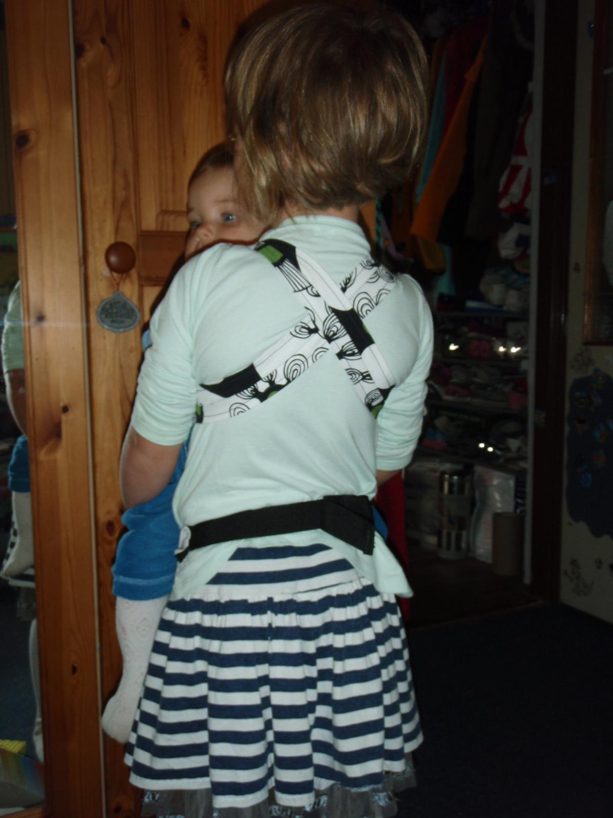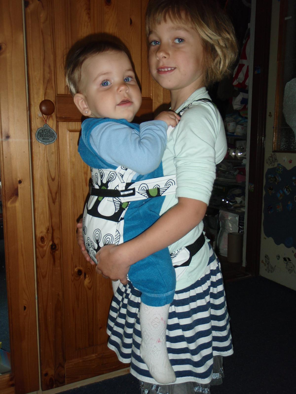 Jasmínka se dneska omotávala punčocháčema, tak jsme zjistily, že i miminko je nošenec a potřebuje šátek (já o tom, že bude nosit taky jsem snila už dlouho, ale nechávala jsem to na ní, až přijde sama, přišla a do 15ti minut měla šátek hotový 😀 😀 😀 ) Ono ti jinak nešlo, ona tak strašně chtěla! 😀 (Je to jen "výšiv", potřebuje delší, ale to až po dovče).