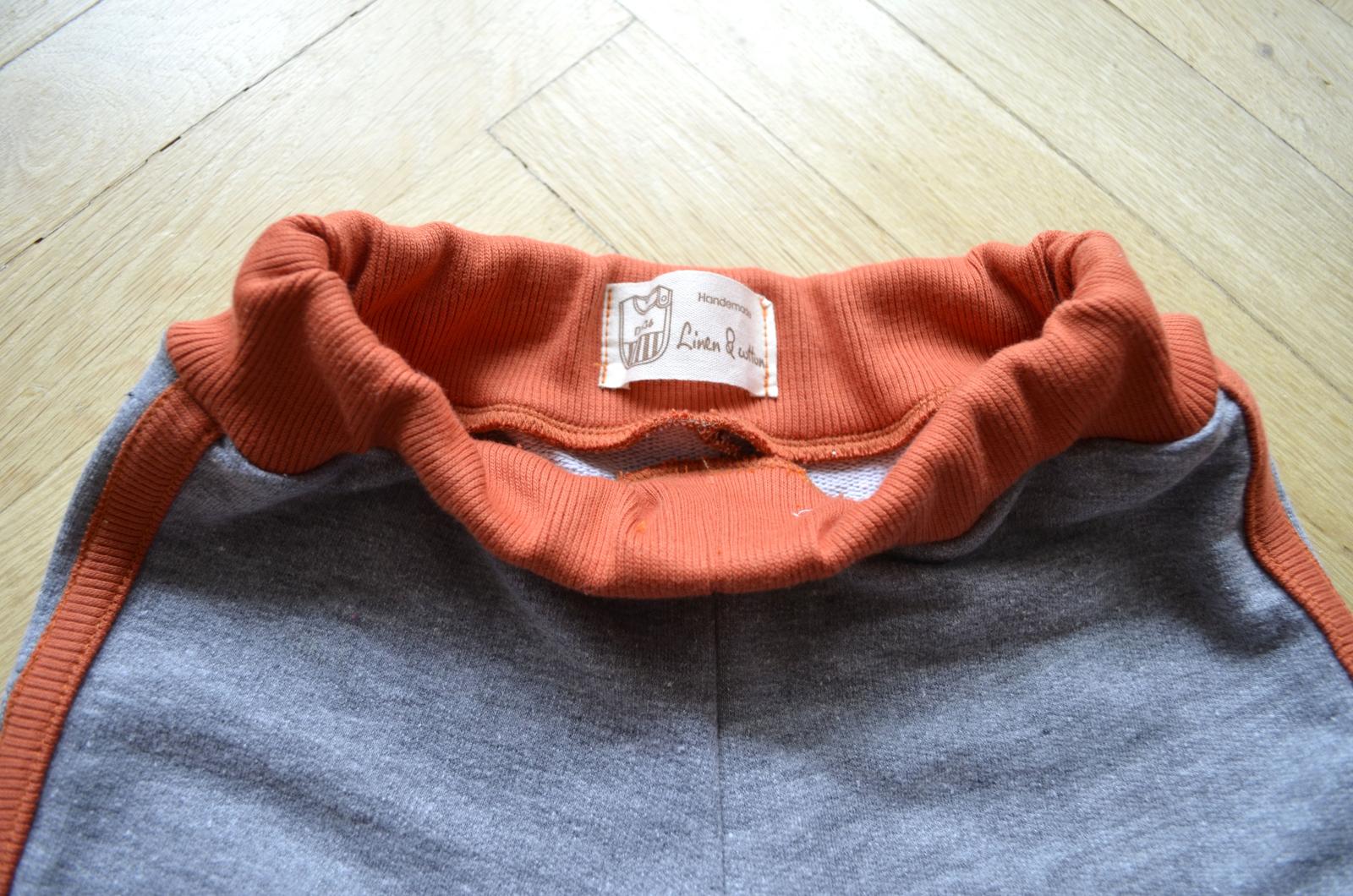 - kraťasy pro prcka jsem šila z kraťasů, na kterých jsem tu nedávno demonstrovala olemování, kdy je spodek lemu na OL a prošité dvojjehlou (měly modrý lem). Měly tak šílený střih, dítko v tom vypadalo, jako by mělo třmínky kvůli kyčlím, tak jsem je rozpárala, vystříhala z nich, co šlo a výsledek je daleko lepší. Akorát jsem já blb našila předek pasu dozadu, měla jsem tam i hezky našitou cedulku mamafactory...tak jsem ji odpárala a dozadu dala tu od @zuzkasim, aby to manžel poznal 🙂