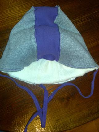 tak čepka zde, má to kupa nedostatků, tož víte - po plíně je to první oděv, co jsem ušila 😀 : vnitřek beránek MTX, venku - fialový finerib MTX a patent šedé melé MTX 😀