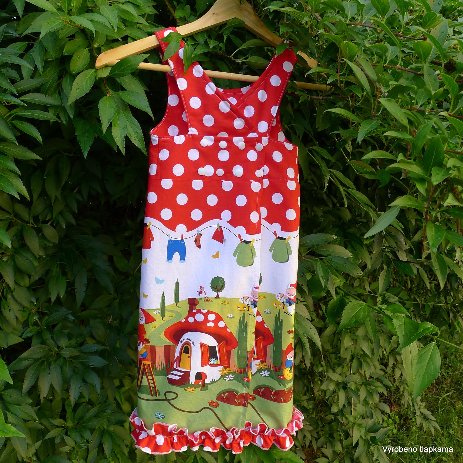 šatky, původně měly vypadat úplně jinak (nařasená půlkolová sukně a vypasovaný živůtek s mašlí, pro J.), jenže jsem sehnala už jen 80 cm látky a na to se mi to kupodivu nevešlo. Tak taková znouzectnost, zbyly mi odstřižky tak 10x10 cm, dva 😀
