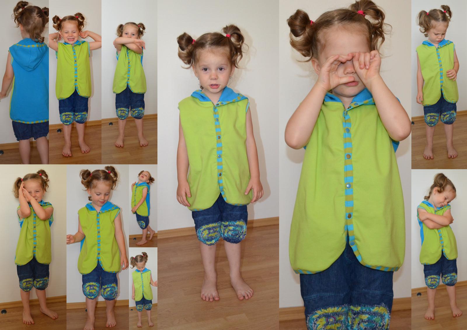@caramilla, tak abys nemyslela, že v tom jedeš sama... Začala jsem šít podzimní věci, vestičky pro holky, zde nová majitelka demonstruje své nadšení z focení a vesty samotné. Nejsou to výcvaky, jsou to její reálné ksichtíky plné nadšení a radosti.