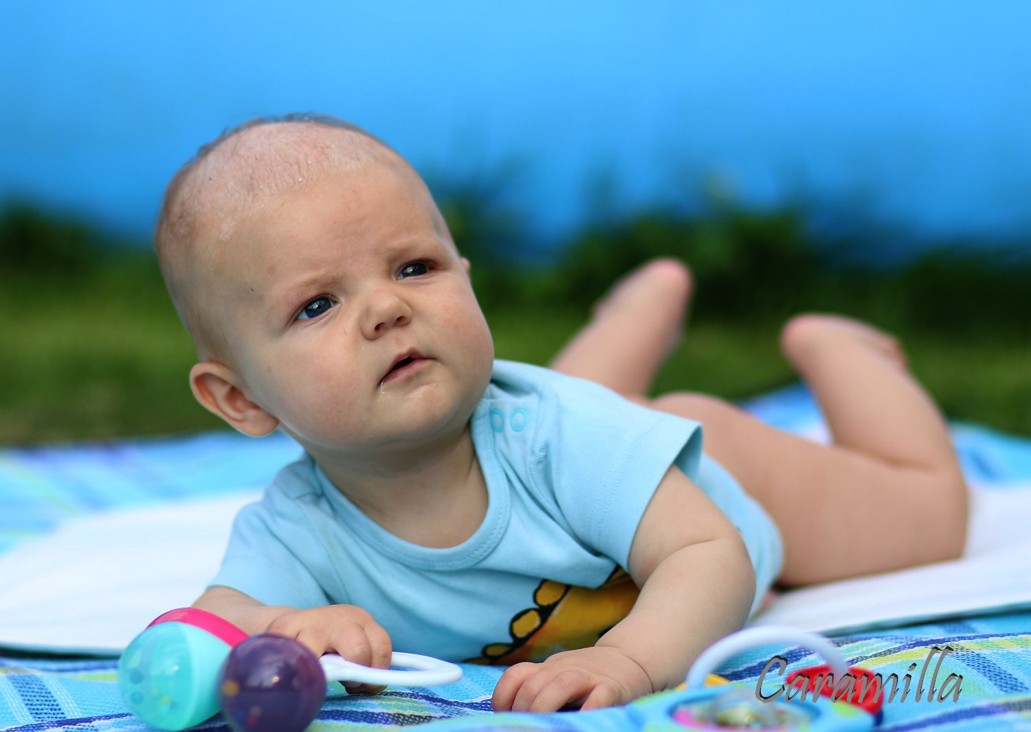 našla jsem fotku mého muže cca v tomhle věku a podobnost tam určitě je, ale naživo je Kryštof celá moje máma křížená se mnou (já jsem podobná do táty). Má mojí bradu a tváře i nos. Jediné, co nevíme, po kom má jsou oči. To jsem se zatím podle fotek nedopátrala... Ještě vám pak oscanuju mou fotku, když jsem byla miminko 😀