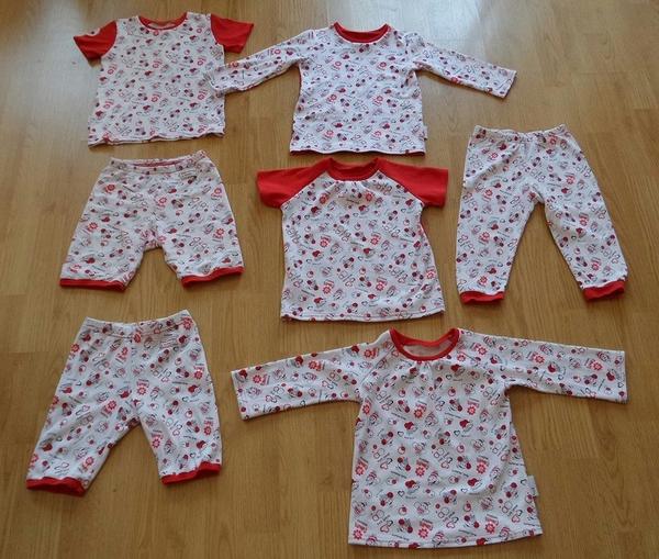 Trochu růžového plevelení 🙂 Měla jsem v OL růžové nitě, tak jsem dodělala vše co bylo v plánu. Lněné kalhoty dle střihu z Ottobre jsou super, nejdřív se mi po ušití nelíbili, ale nakonec je na hřiště taháme skoro pořád. Na sukýnce jsem si spíš trénovala střih a vyzkoušela z piké a poslední je bambusová noční košilka /teda prý šaty na spaní-dle Ely/