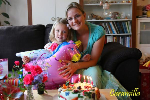 Dneska Jasmínka oslavila své 4. narozeniny. Bohužel si z tábora dovezla rýmu, tak nebyla úplně v kondici, navíc venku hnusně, museli jsme být uvnitř a já byla tak unavená, že jsem cvakala fotky bez ladu a skladu a neměla jsem energii je víc řešit a teď toho lituju, fotky jak z kompaktu...