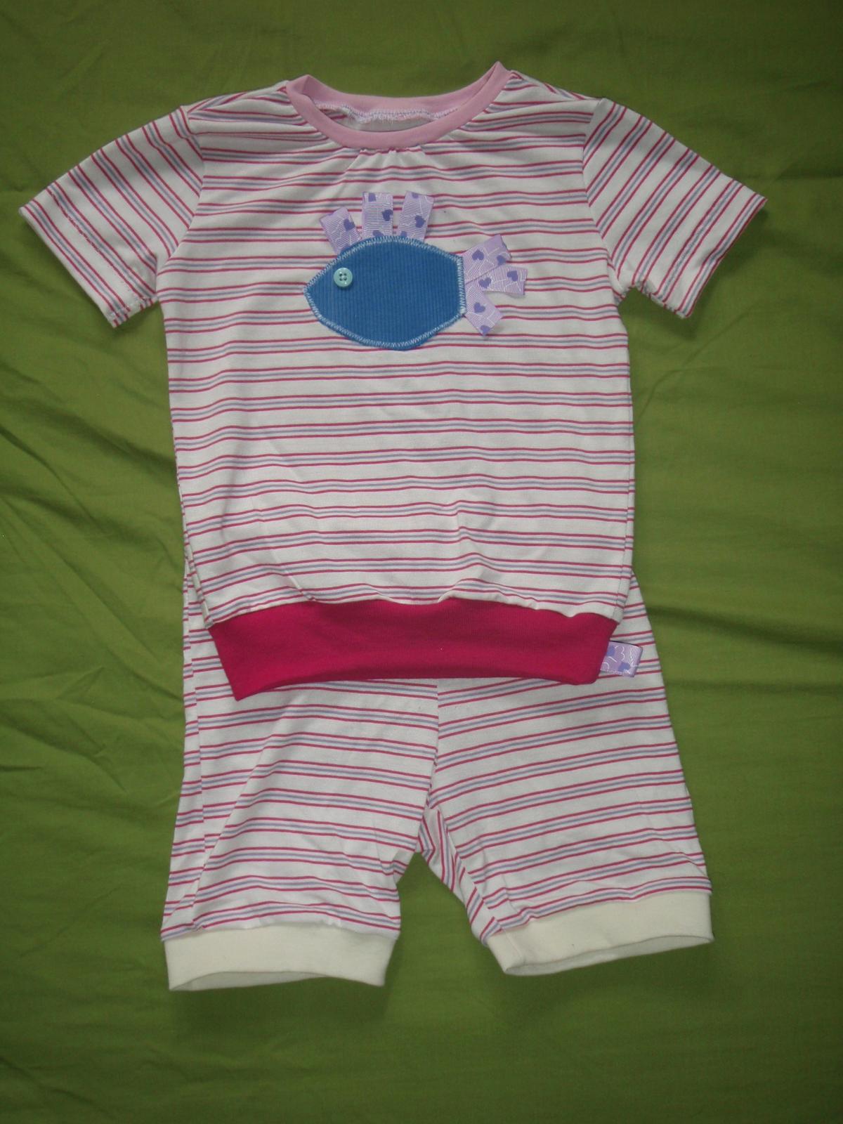 Pruhovane pyzemo z bambusu jsem v letnich vedrech nestihla dosit, takze triko bude Kaca nosit normalne a kratasy si vezme Majda do skolky na spani, maji tam vzdycky horko.